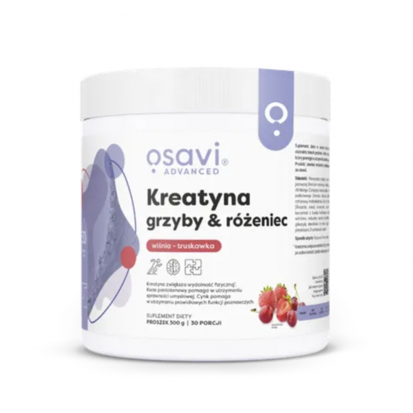Składniki: Monohydrat kreatyny, ekstrakt z owocników soplówki jeżowatej (Hericium erinaceus), ekstrakt z owocników maczużnika chińskiego (Cordyceps sinensis), ekstrakt z owocników błyskoporka podkorowego (Inonotus obliquus), regulator kwasowości: kwas cytrynowy, maltodekstryna, ekstrakt z korzenia różeńca górskiego (Rhodiola rosea), koncentrat z czarnej marchwi w proszku, koncentrat z buraka ćwikłowego w proszku, naturalny aromat wiśniowy, naturalny aromat truskawkowy, substancja słodząca: glikozydy stewiolowe ze stewii, cytrynian cynku, chlorowodorek pirydoksyny, D-pantotenian wapnia.
