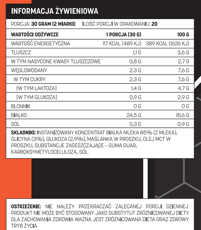 źródłem białka MPC (milk protein concentrate 85) będącym naturalnym miksem