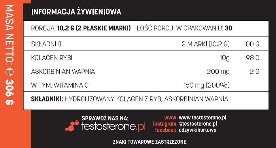 Testosterone.pl - Marine Collagen + C to suplement diety zawierający w swoim składzie: