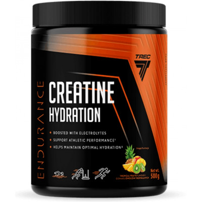 TREC Creatine Hydration to nowoczesny suplement łączący kreatynę z kompleksem elektrolitów w wygodnej formie proszku o tropikalnym smaku. Wspiera wydolność podczas intensywnych treningów, pomaga w utrzymaniu prawidłowej pracy mięśni i uzupełnia elektrolity tracone podczas wysiłku.