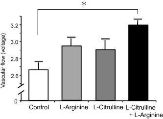 W badaniu z 2009 roku prowadzonego na królikach udało się udowodnić iż połączenie cytruliny wraz z argininą zwiększało przepływ krwi w ich uszach. Jest to powiązane z większą produkcją tlenku azotu, który jak udowodniono naukowo gra ważną rolę w tym procesie.