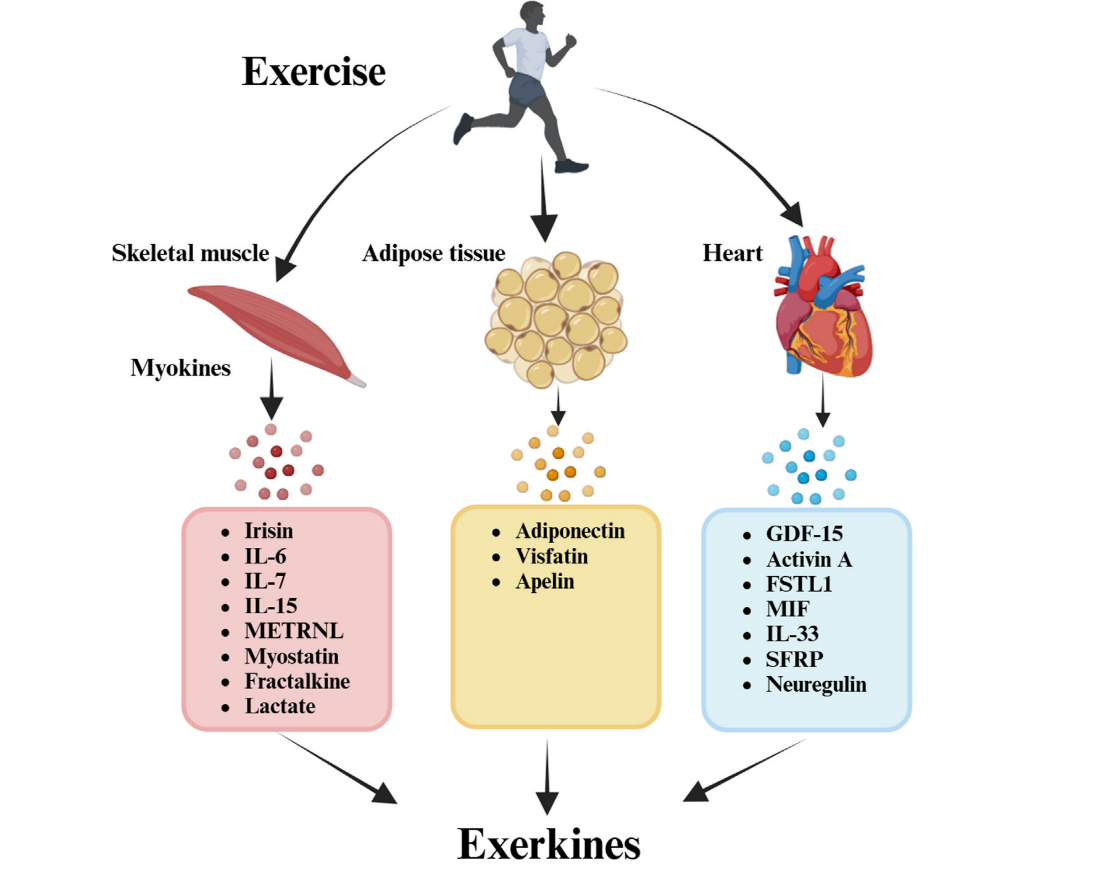 Aktywność fizyczna bez wątpienia niesie za sobą wiele korzyści zdrowotnych. Pomaga w utrzymaniu odpowiedniej masy ciała, wydolności fizycznej, a także kondycji psychicznej. Z wysiłkiem fizycznym związane będą również exerkiny – związki, które są uwalniane z wielu narządów, tkanek i komórek organizmu i wywierają działanie auto-, para- lub endokrynologiczne. Exerkiny są uwalniane z mięśni szkieletowych (miokiny), serca (kardiokiny), wątroby (hepatokiny), białej tkanki tłuszczowej (adipokiny), brązowej tkanki tłuszczowej (baptokiny) i neuronów (neurokiny). Wykazano, że wiele z tych exerkin w izolowanych komórkach mięśniowych i modelach szczurzych potencjalnie reguluje syntezę białek mięśniowych, unaczynienie, mitochondria biogeneza, naprawa i przebudowa mięśni oraz przebudowa serca oraz neuroprotekcja w hipokampie.
